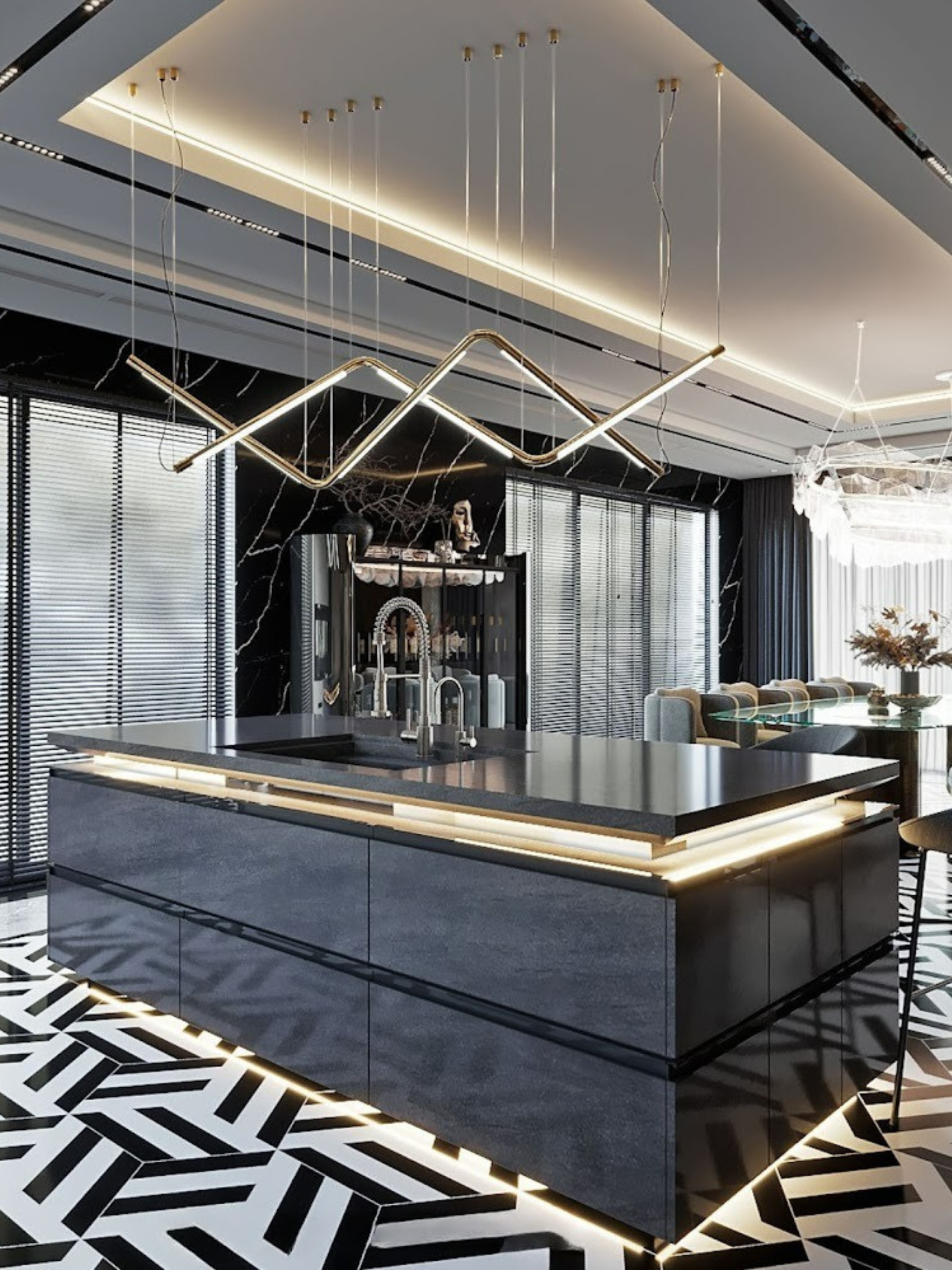 Ánh sáng và không gian được khai thác tối đa để tạo nên những trải nghiệm thị giác choáng ngợp. Sự cộng hưởng giữa ánh sáng tự nhiên và các bề mặt vật liệu có độ phản chiếu cao giúp không gian như được mở rộng đa chiều, xóa nhòa các giới hạn vật lý. Một bầu không khí vừa lộng lẫy, xa hoa nhưng vẫn giữ được sự khoáng đạt và kết nối nhịp nhàng.