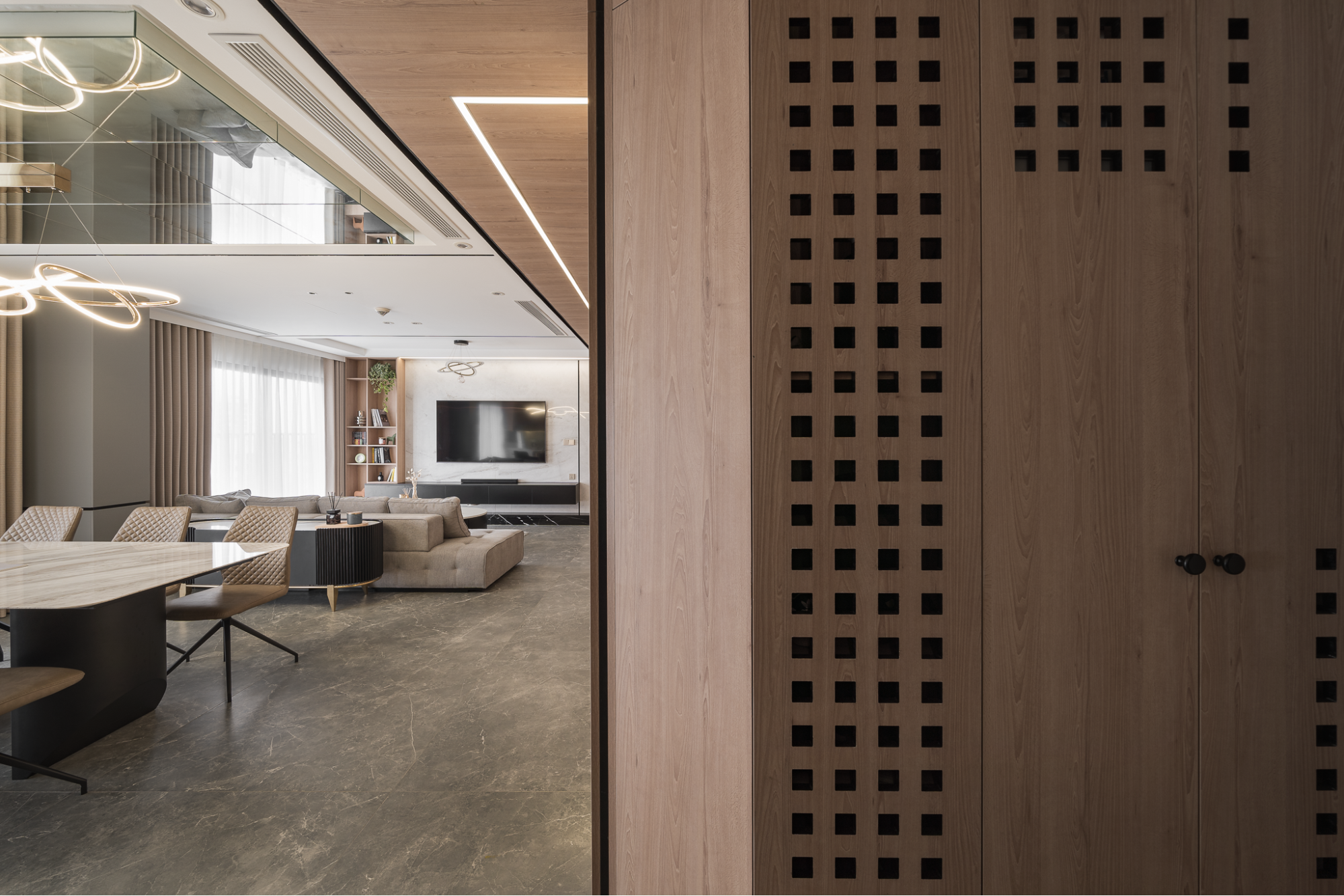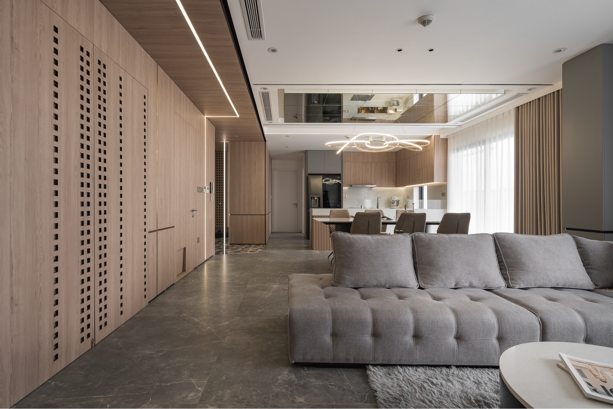 Khu vực sinh hoạt chung được tổ chức theo hướng mở, tạo sự kết nối tự nhiên giữa các hoạt động hàng ngày nhưng vẫn giữ được tính riêng tư cần thiết. Ánh sáng tự nhiên được dẫn sâu vào không gian, giúp tổng thể thay đổi nhẹ nhàng theo từng thời điểm trong ngày.