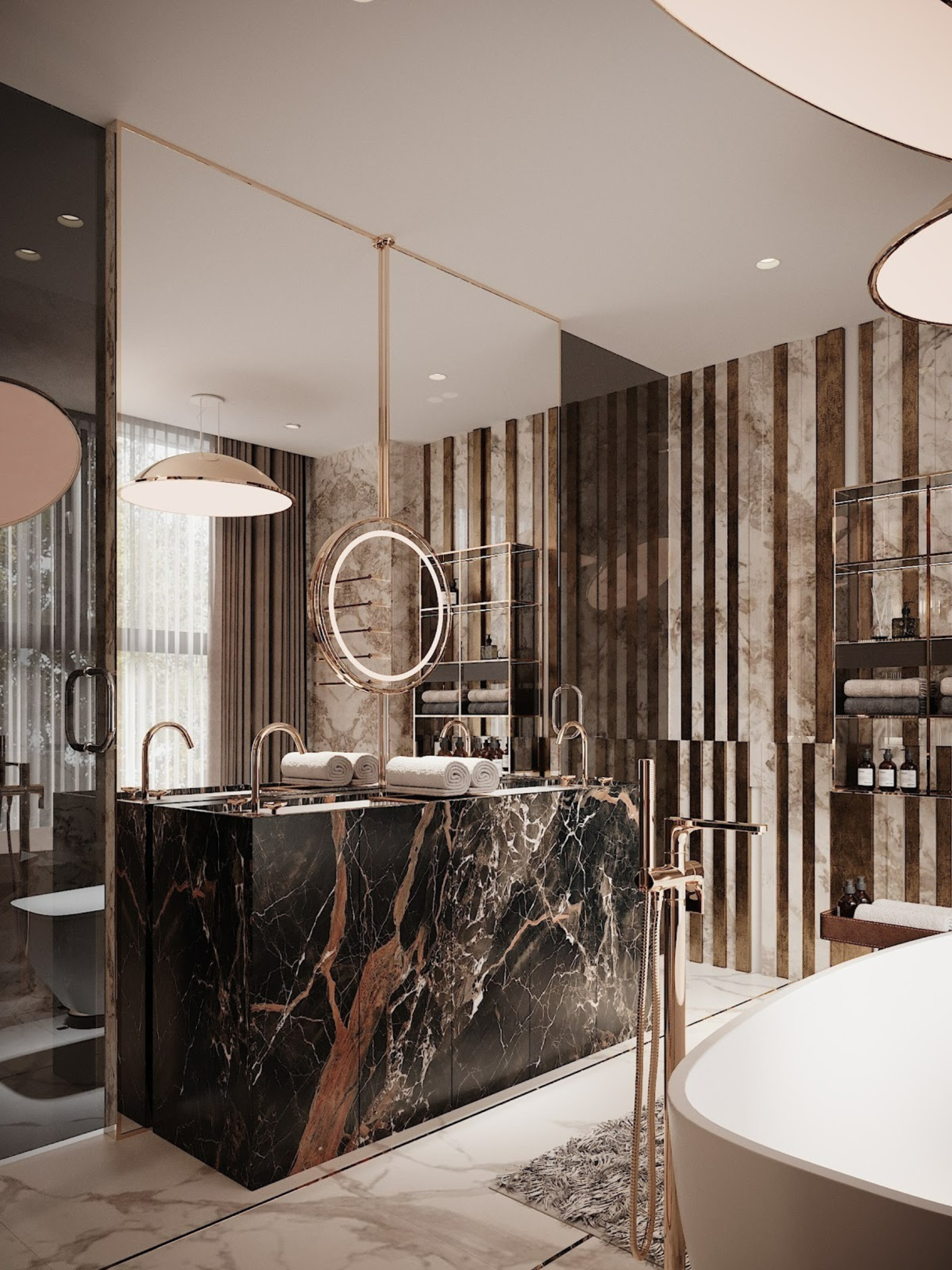 Sự chuyển tiếp nhịp nhàng giữa các không gian tạo nên một mạch cảm xúc liền mạch và thư thái. Từng điểm chạm vật liệu, từ sự bóng bẩy sang trọng đến nét mộc mạc ấm áp, đều được tính toán để nuông chiều giác quan, biến ngôi nhà thành một “chốn” nghỉ dưỡng biệt lập và đẳng cấp ngay tại gia.
