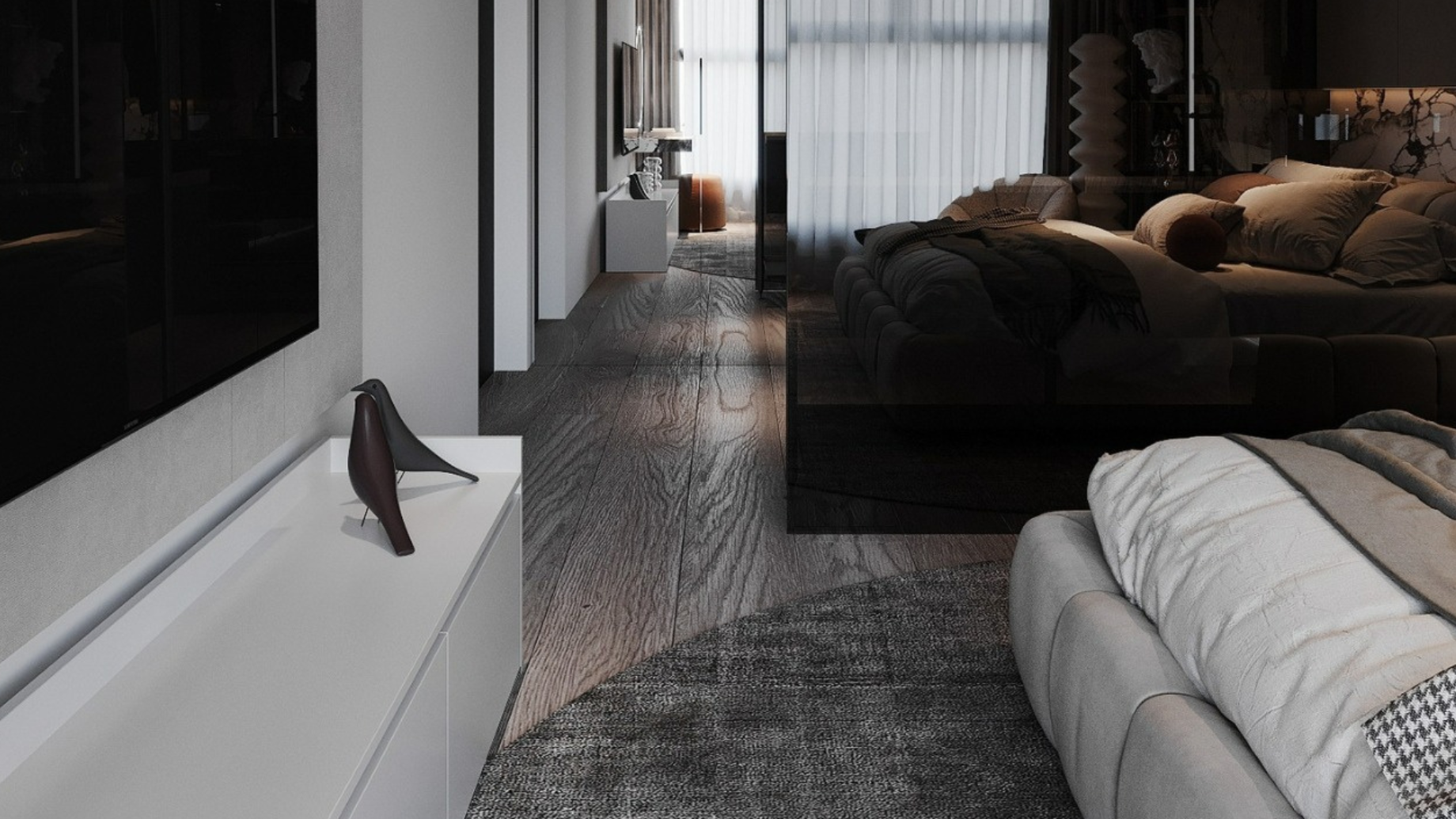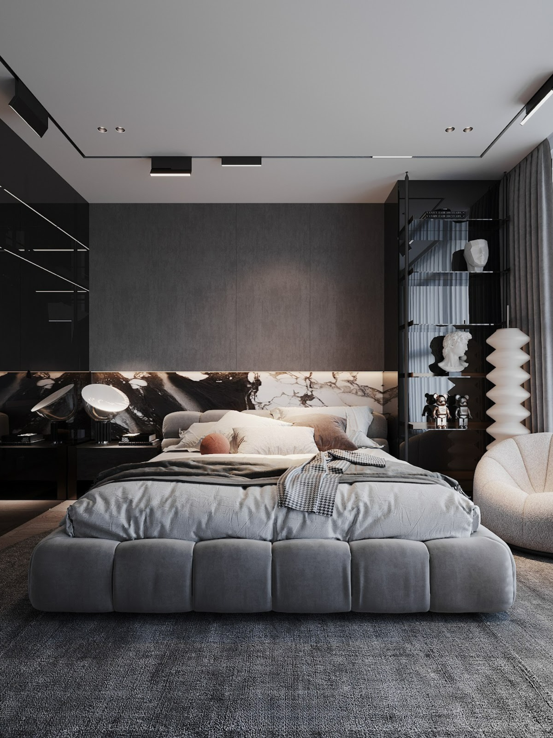 Mọi chi tiết đều toát lên sự chỉn chu và gu thẩm mỹ khác biệt. Từ bề mặt đá đen tia chớp lạnh lùng đến sự ấm áp của các chi tiết bọc nỉ cao cấp, tất cả tạo nên một sự cân bằng tinh tế. Không gian tĩnh lặng nhưng không đơn điệu, mà ẩn chứa sức hút nội lực mạnh mẽ của một phong cách sống dẫn đầu xu hướng.